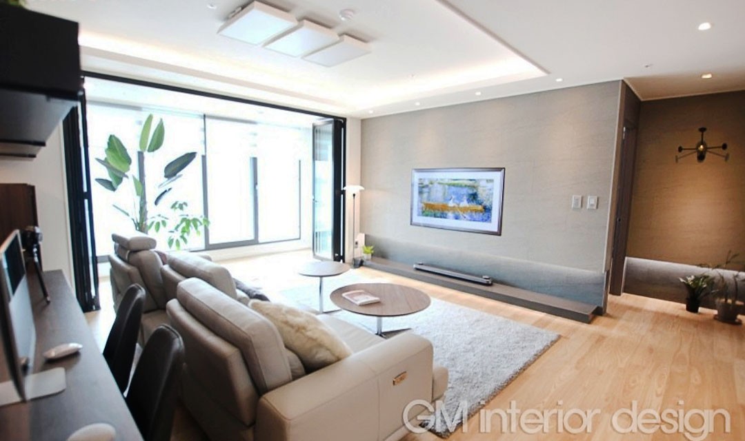 #모던 #내추럴 #고급 #차콜그레이 #라이트브라운 #애쉬내추럴 #화이트 #중문 #스윙도어 #폴딩도어 #원목마루 #아트월 #매립조명 #간접조명 #30평 #아파트인테리어