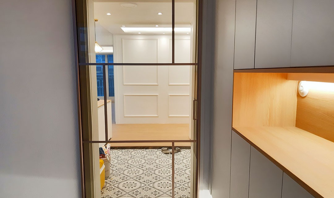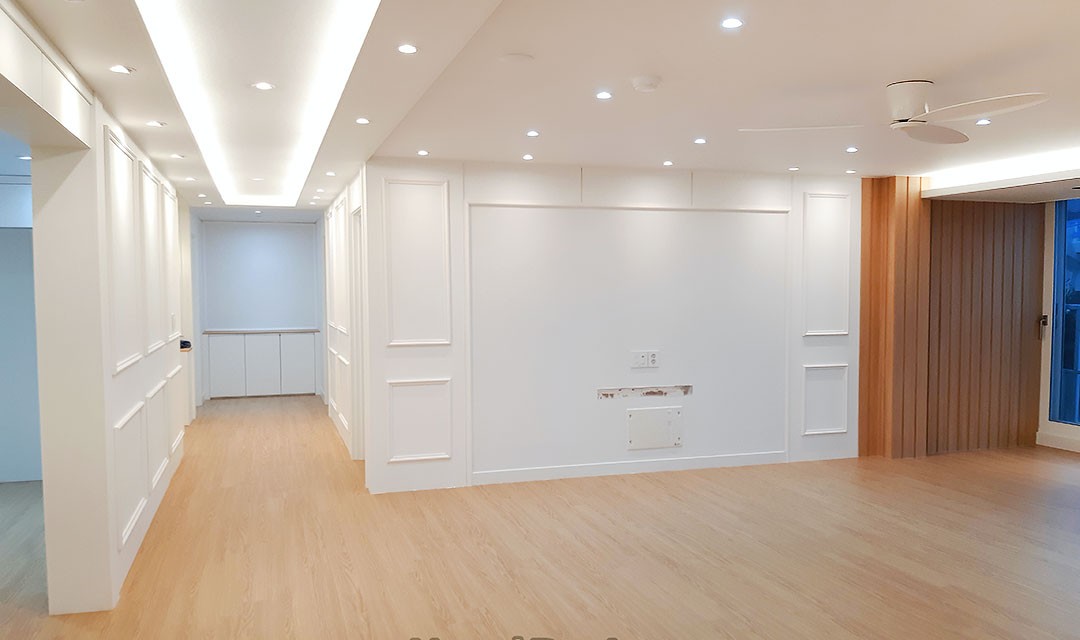 #모던클래식 #따뜻한 #고급 #럭셔리 #웨인스코팅 #우드 #화이트 #라이트브라운 #중문 #슬라이딩도어 #펜던트조명 #매립조명 #간접조명 #벽등 #40평 #아파트인테리어