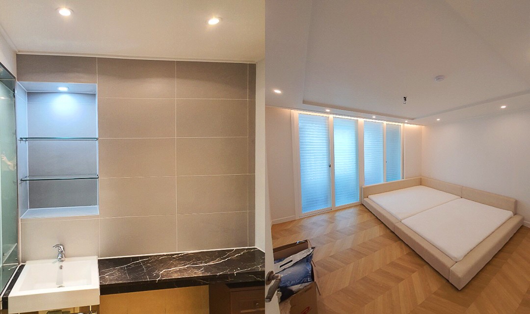 #모던 #네추럴 #심플 #중문시공 #타일시공 #포세린타일 #쉐브른타일 #인테리어조명 #매립조명 #간접조명 #40평 #아파트인테리어