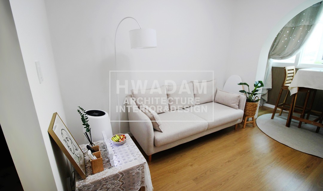 #심플 #유니크 #모던 #세련 #실용 #베란다확장 #목공사 #실크도배 #아치 #화이트 #라이트브라운 #원목마루 #강화마루 #펜던트조명 #좁은평수인테리어 #10평 #아파트인테리어