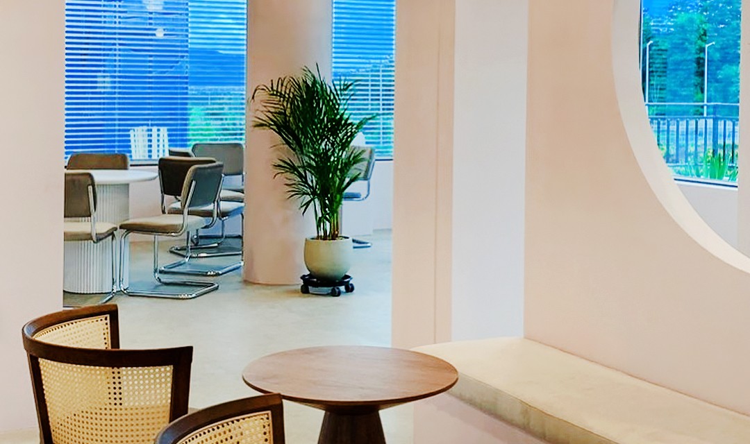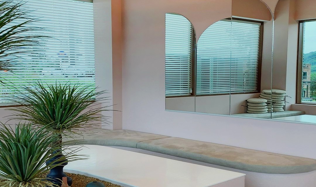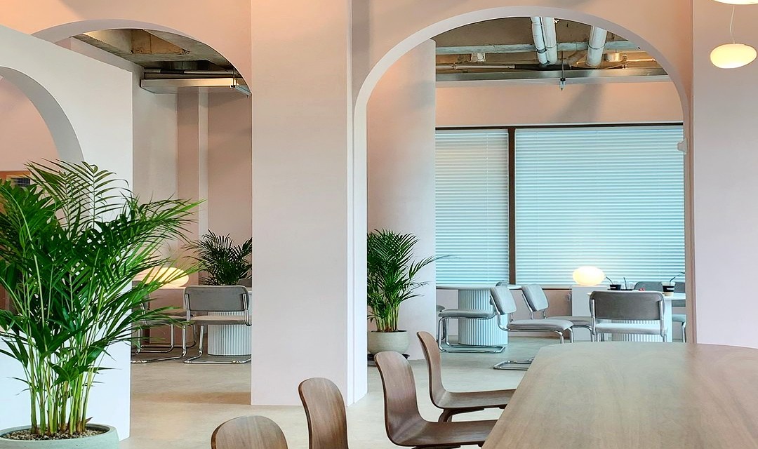 #우아 #모던 #유니크 #아치#우드 #베이지 #핑크 #라이트브라운 #포인트조명 #펜던트조명 #상가인테리어 #카페인테리어 #디저트카페인테리어