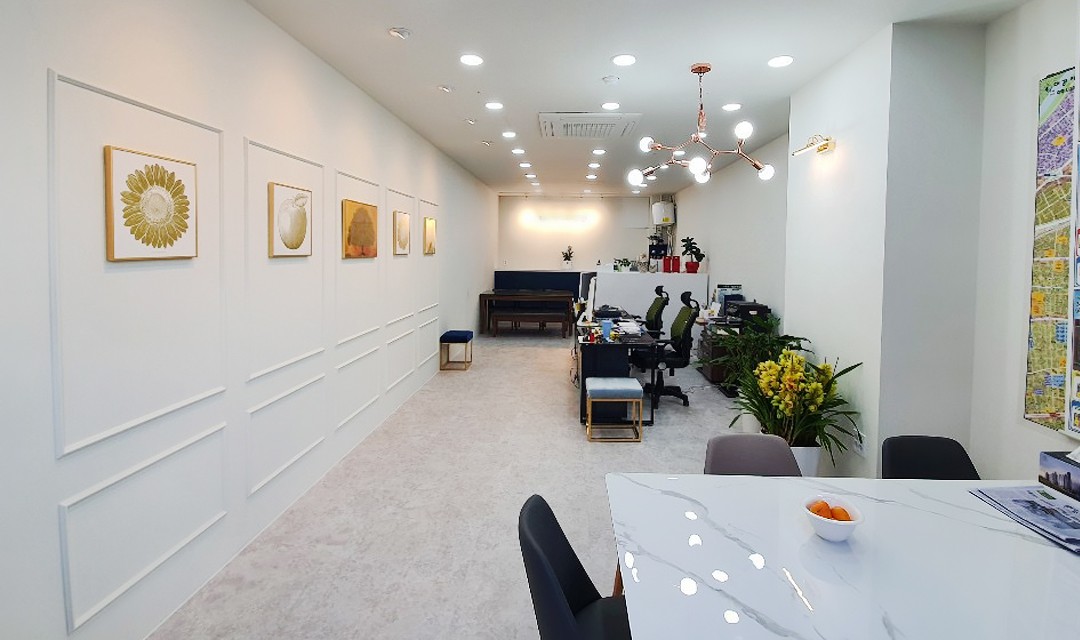 #고급 #깔끔한 #웨인스코팅 #화이트 #네이비 #레일조명 #매립조명 #프리매립등 #벽등 #10평 #상가인테리어 #부동산인테리어