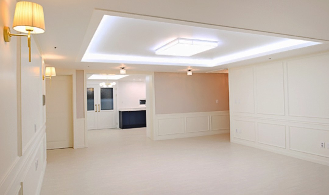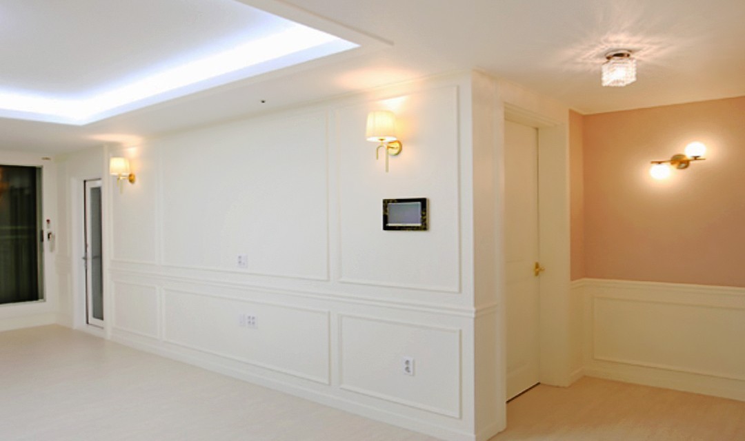 #북유럽 #세미클래식 #고급 #럭셔리 #웨인스코팅 #엔틱골드포인트 #화이트 #다크네이비 #중문 #양개형도어 #벽등 #포인트조명 #40평 #아파트인테리어