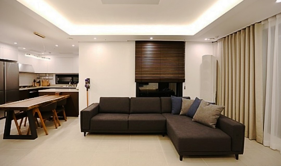 #고급 #모던 #우드 #오크컬러 #베이지 #화이트 #중문 #슬라이딩도어 #포세린타일 #간접조명 #벽등 #30평 #아파트인테리어