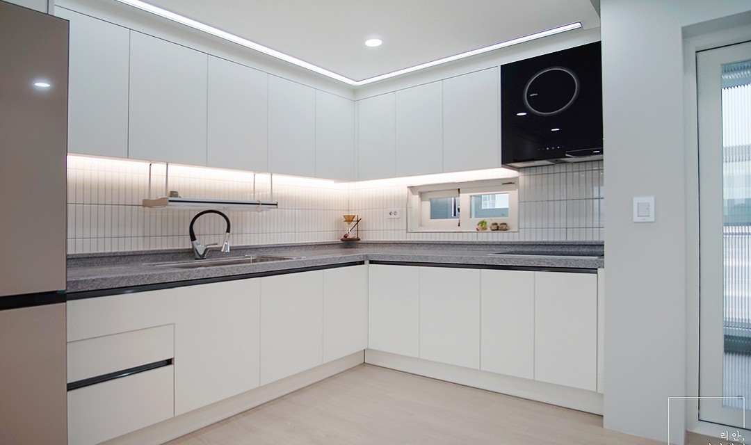 #모던 #내추럴 #화사한 #깔끔한 #목공사 #화이트 #그레이 #그린 #중문 #슬라이딩도어 #그레이타일 #모자이크타일 #매립조명 #라인조명 #간접조명 #벽등 #30평 #아파트인테리어