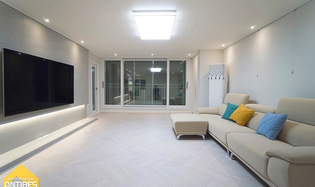 #모던 #네추럴 #심플 #트렌디 #중문시공 #3중연동 #타일시공 #폴리싱타일 #인테리어조명 #매립조명 #간접조명 #쉐브른마루 #친환경벽지 #제작가구 #30평 #아파트인테리어
