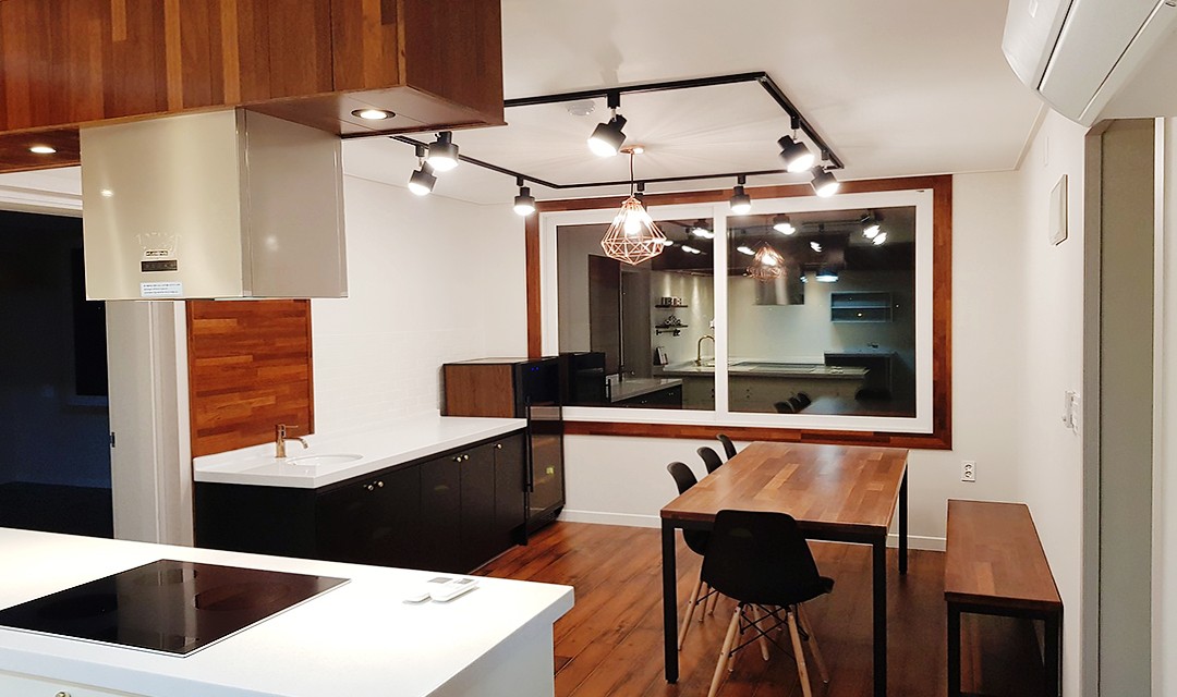 #모던 #세련 #우드 #화이트 #브라운 #네이비 #중문 #3연동중문 #레일조명 #포인트조명 #나무데크 #주택인테리어