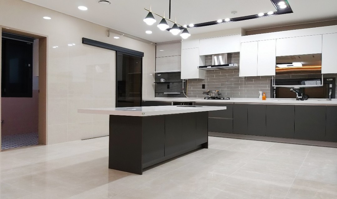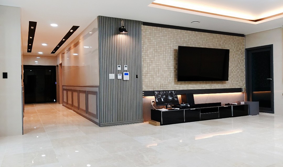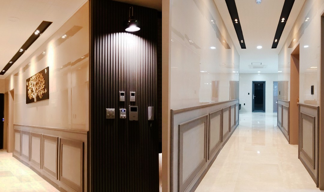 #고급 #럭셔리 #모던 #호텔분위기 #웨인스코팅 #그레이 #화이트 #베이지 #아트월 #폴리싱타일 #모티스락 #매립조명 #간접조명 #50평 #주택인테리어