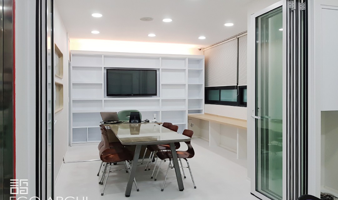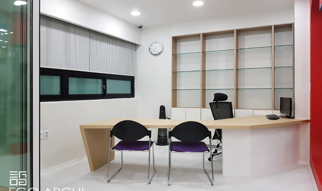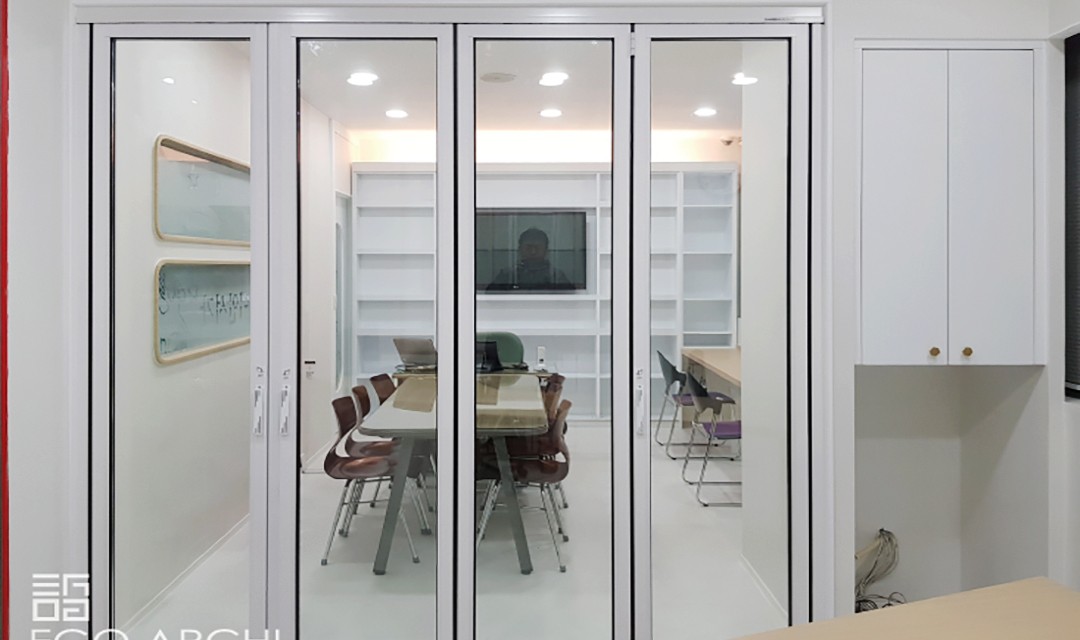 #모던 #세련 #필름시공 #화이트 #우드톤 #가구제작 #폴딩도어 #간접조명 #매립조명 #상가인테리어 #학원인테리어 #독서토론학원인테리어