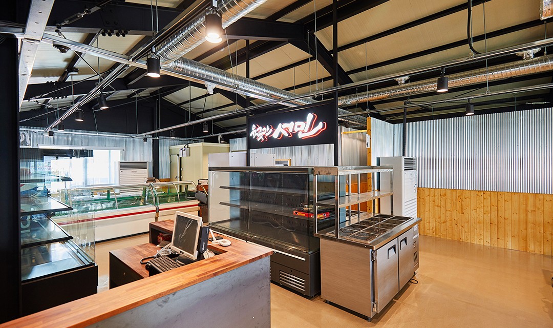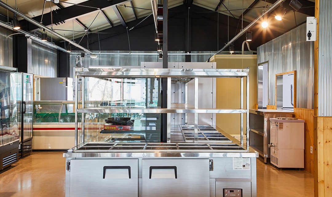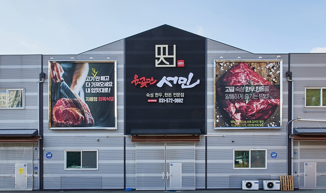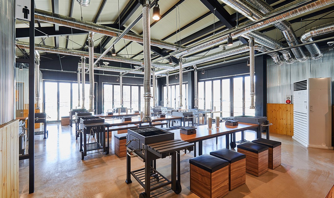 #빈티지 #실용 #창고개조 #에폭시 #그레이 #라이트브라운 #폴딩도어 #레일조명 #60평 #상가인테리어 #한식인테리어 #고깃집인테리어
