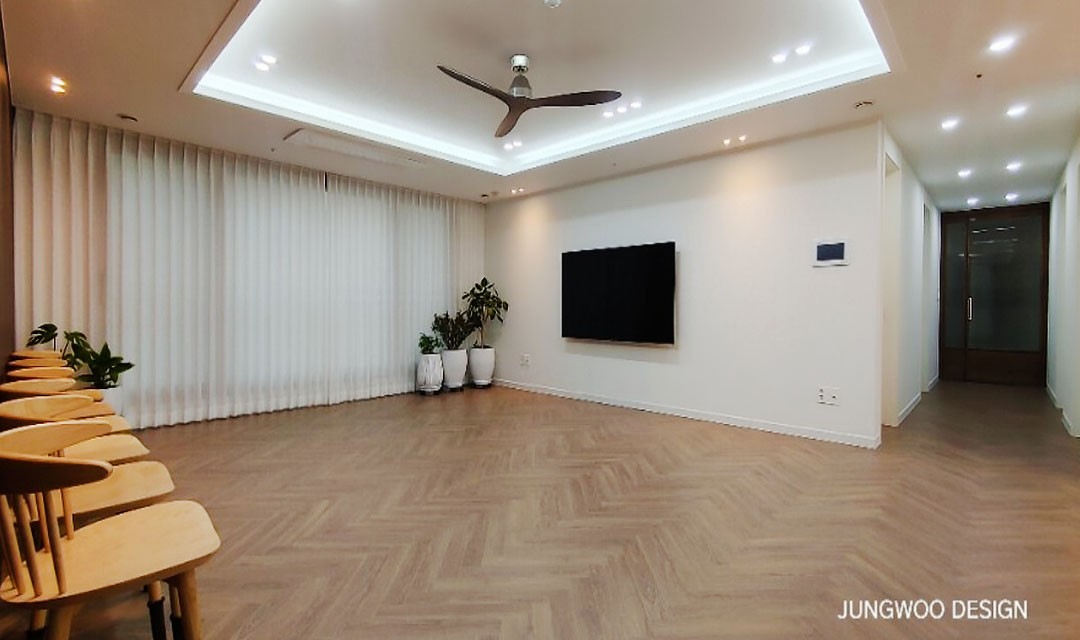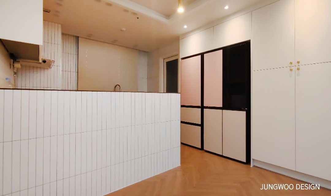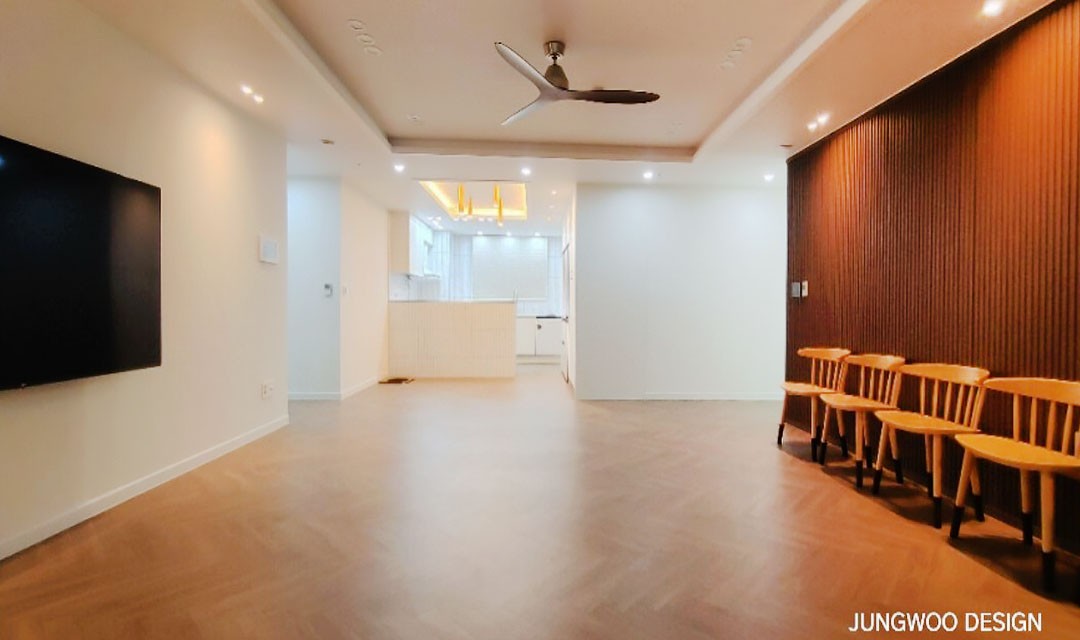 #고급 #클래식 #아늑한 #아치 #우드 #브라운 #화이트 #그레이 #중문 #비대칭양개형중문 #모루유리 #실링팬 #템바보드 #헤링본마루 #매립조명 #간접조명 #40평 #아파트인테리어