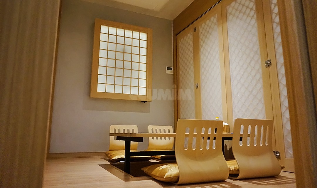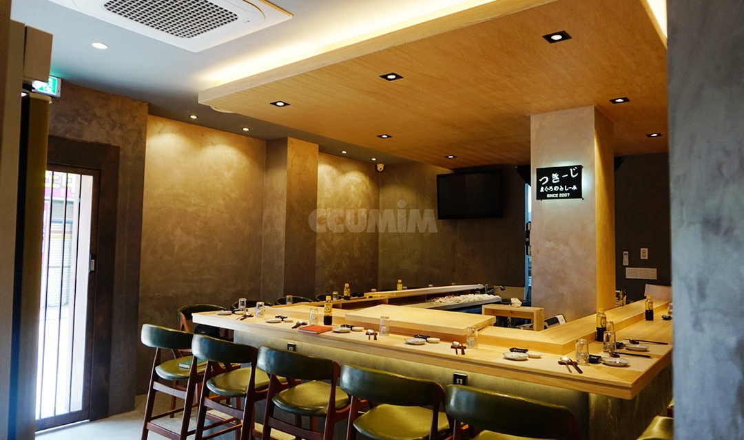 #모던 #고급 #일본풍 #깔끔 #페인트시공 #라이트브라운 #브라운 #그레이 #다찌테이블 #간접조명 #매립조명 #상가인테리어 #일식점인테리어