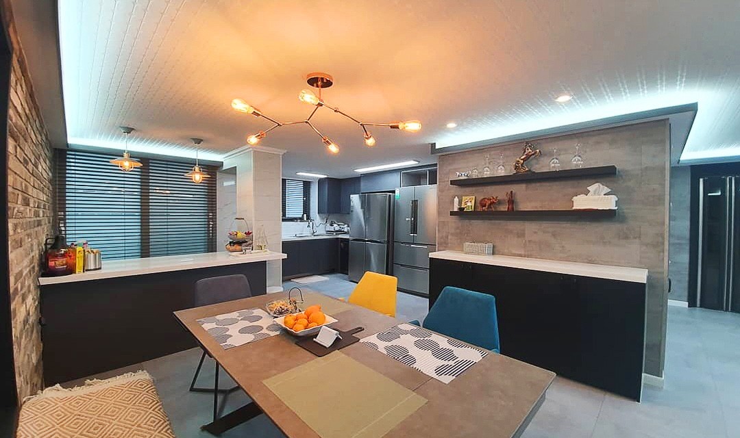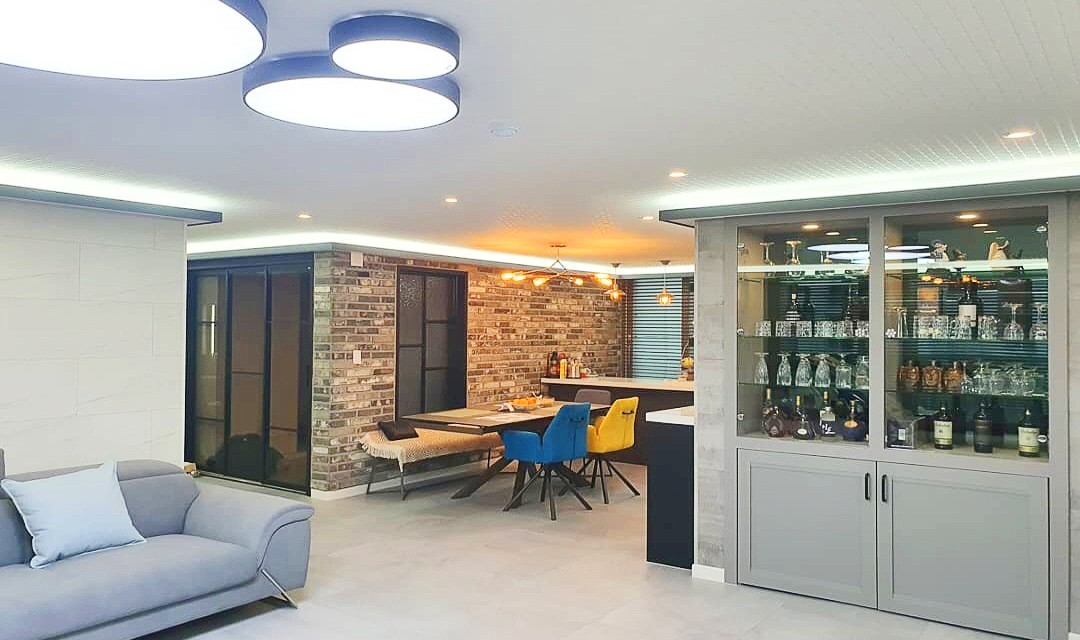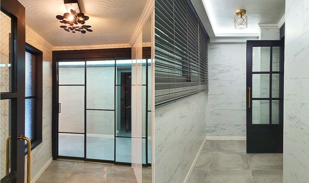 #모던 #트렌디 #빈티지 #럭셔리 #감성 #중문시공 #3중연동 #타일시공 #인테리어조명 #매립조명 #간접조명 #파벽돌 #블랙 #그레이 #50평 #아파트인테리어