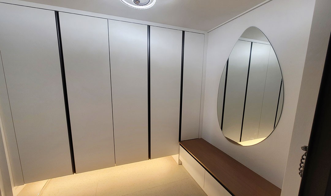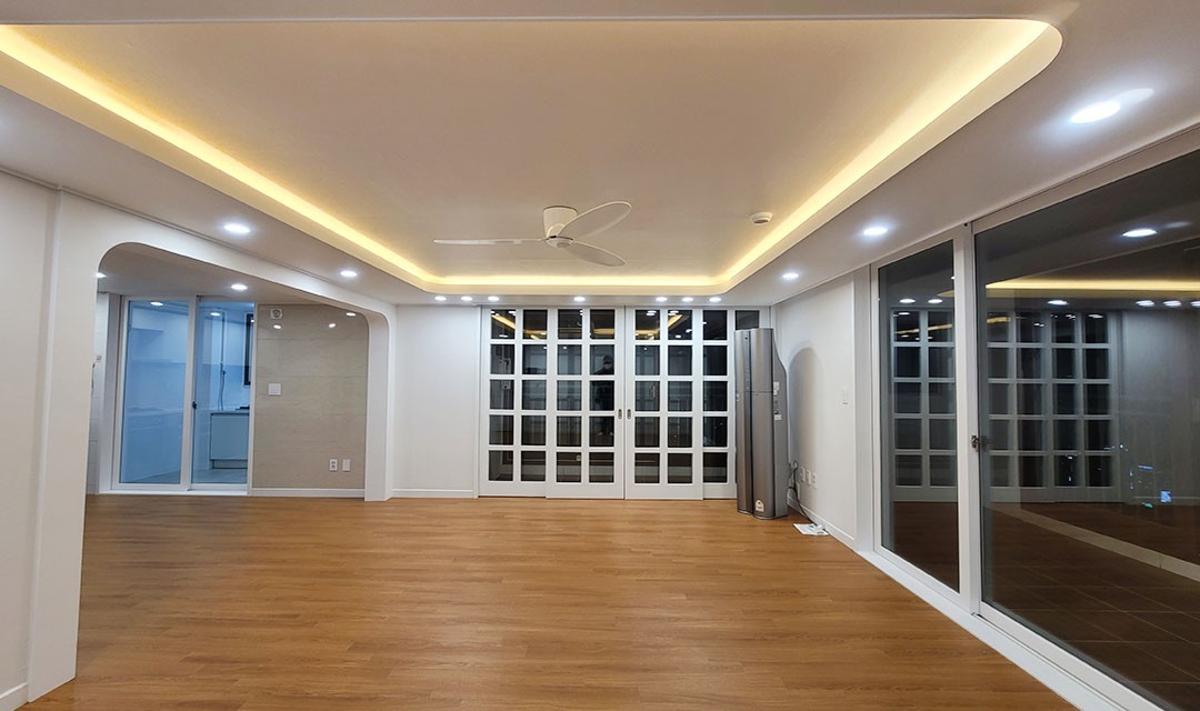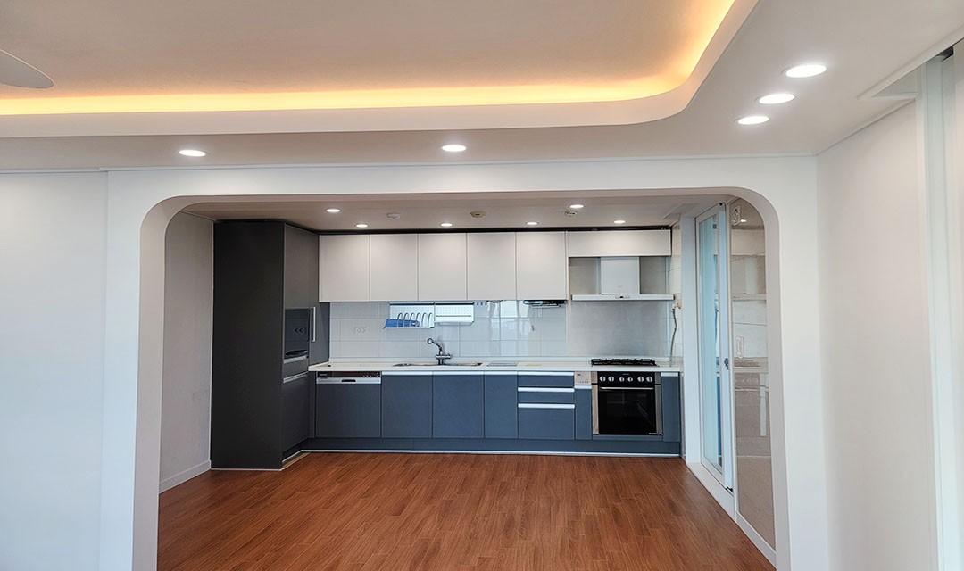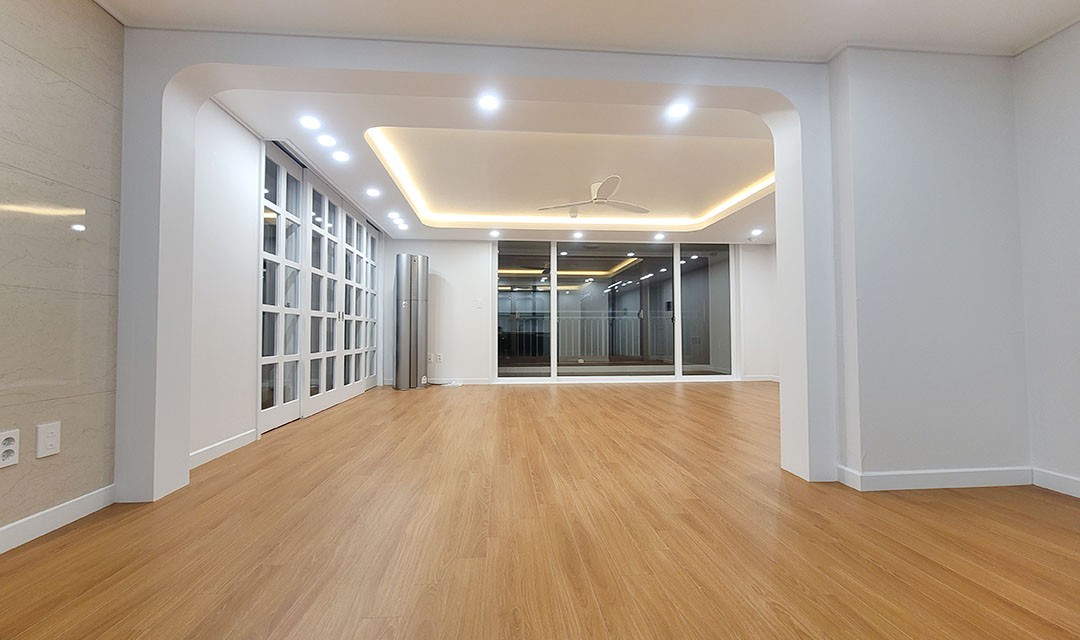 #모던 #고급 #트렌디 #아늑한 #라운드아치 #라이트브라운 #화이트 #중문 #실링팬 #라인조명 #매립조명 #간접조명 #아파트인테리어