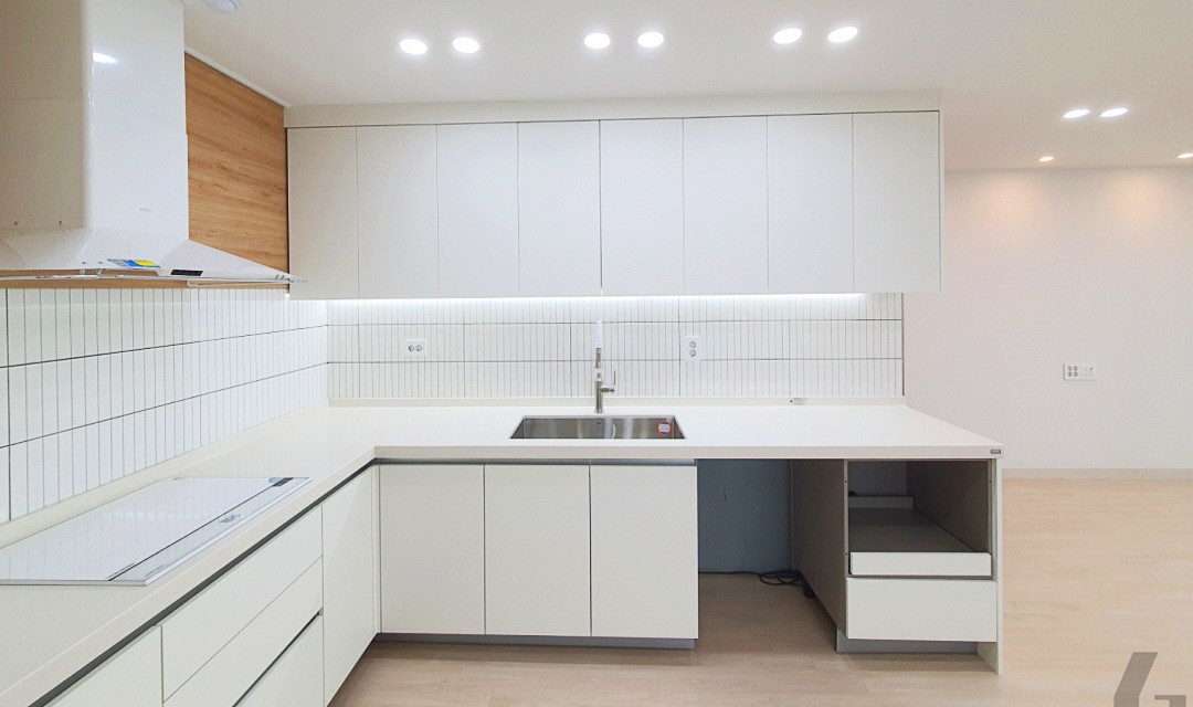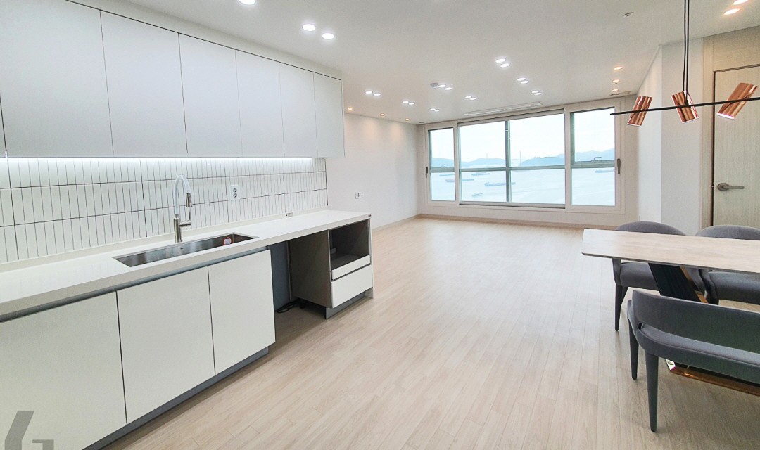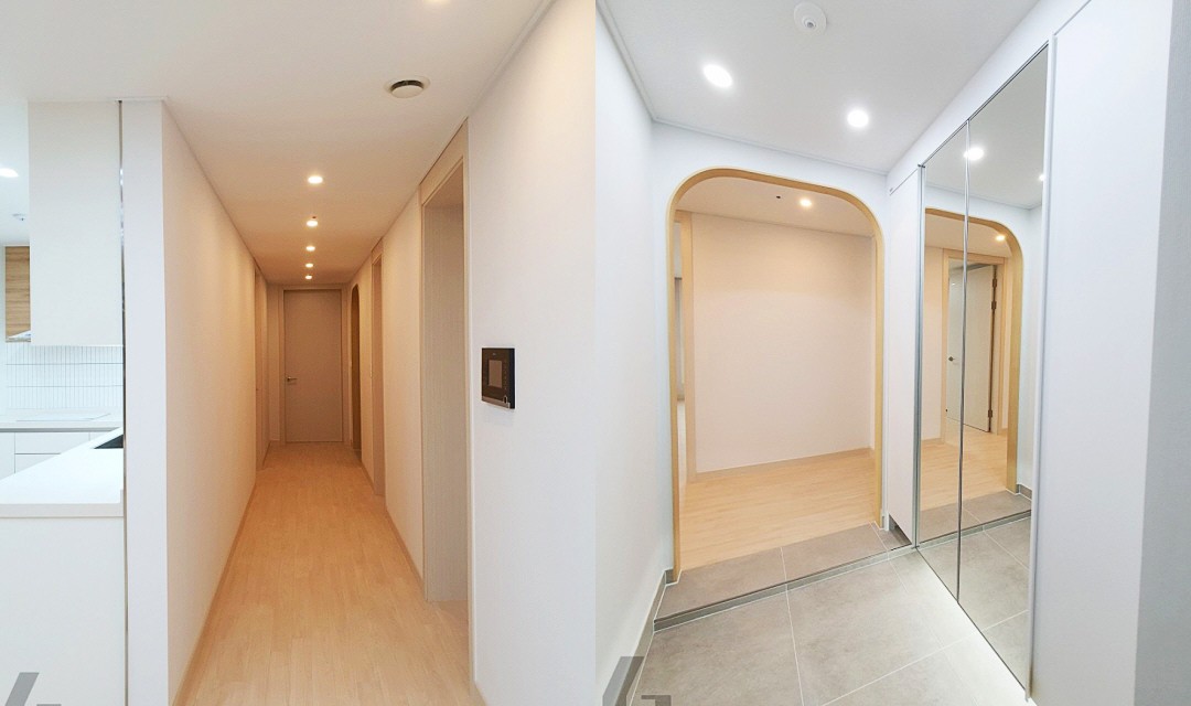 #모던 #럭셔리 #심플 #아치형 #화이트 #우드 #네이비 #포세린타일 #타일시공 #스트레이트셋 #가벽설치 #매립조명 #무광매트도어 #30평 #아파트인테리어