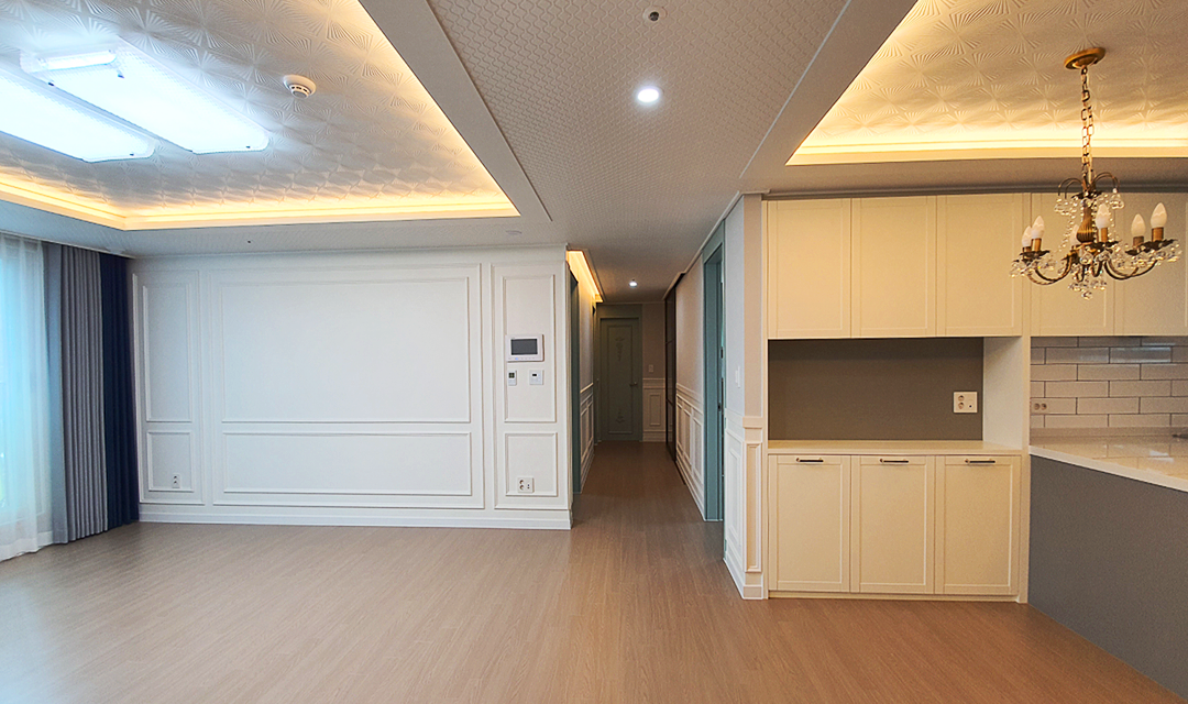 #모던 #클래식 #트렌디 #유니크 #중문시공 #슬림슬라이딩도어 #타일시공 #인테리어조명 #샹들리에 #웨인스코팅 #페인팅 #30평 #아파트인테리어