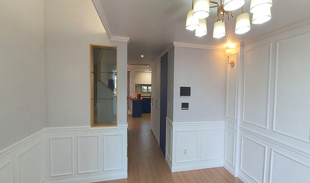 #럭셔리 #클래식 #모던 #트렌디 #중문시공 #스윙세이프도어 #타일시공 #패턴타일 #인테리어조명 #간접조명 #벽등 #웨인스코팅 #실링팬 #맞춤가구 #테라스시공 #복층 #주택인테리어