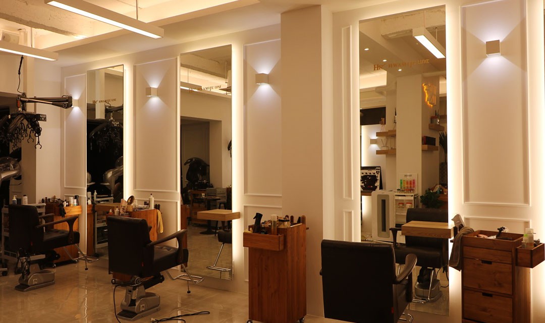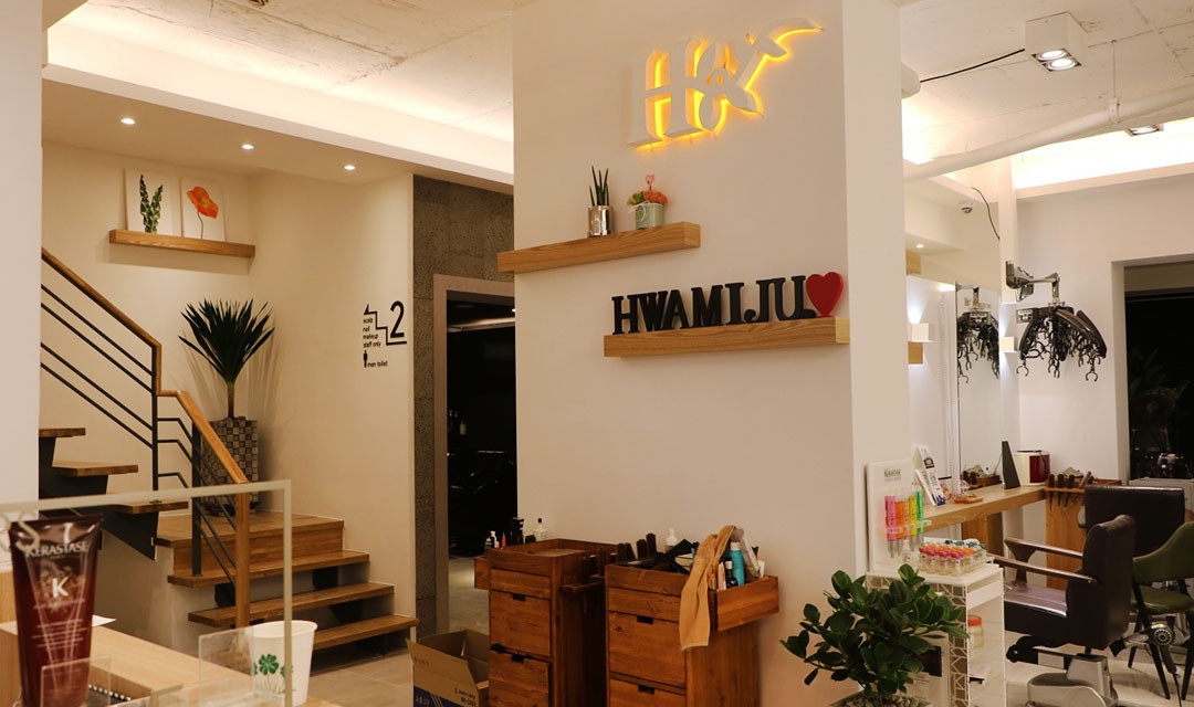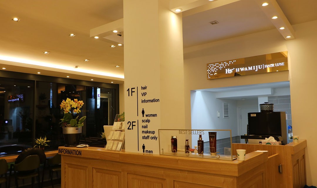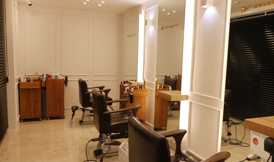 #모던 #고급 #세련 #깔끔 #웨인스코팅 #우드 #화이트 #다크그레이 #벽등 #간접조명 #상가인테리어 #미용실인테리어 #뷰티샵인테리어