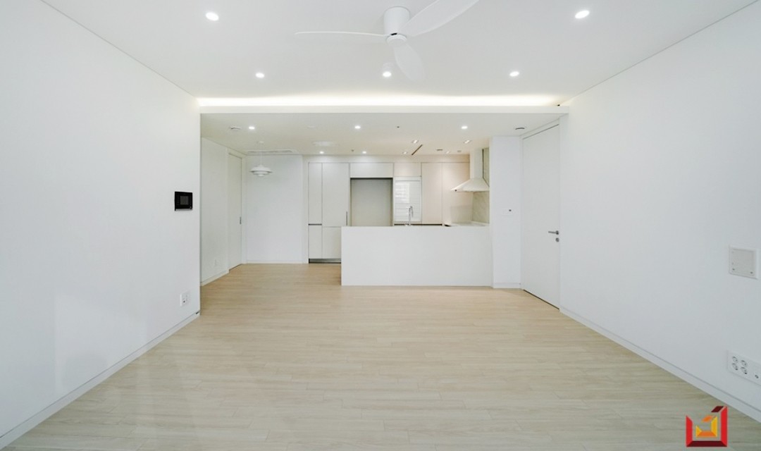 #심플 #고급 #화사한 #따스한 #필름시공 #화이트 #베이직라이트오크 #실링팬 #화이트우드 #강마루 #매립조명 #간접조명 #40평 #아파트인테리어
