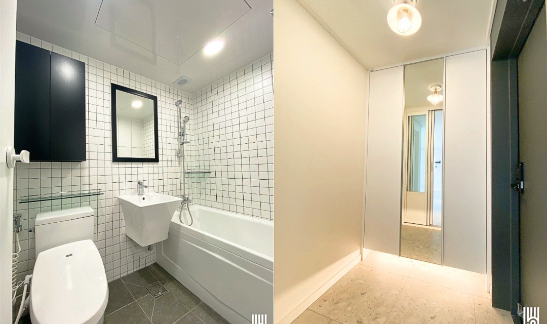 #심플 #모던 #3중도어 #타일시공 #테라조타일 #스트레이트셋 #확장시공 #가벽철거 #오픈주방 #베란다확장 #간접조명 #슬립조명 #그레이 #화이트 #30평 #아파트인테리어