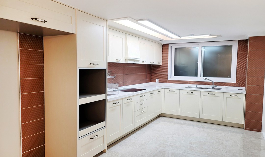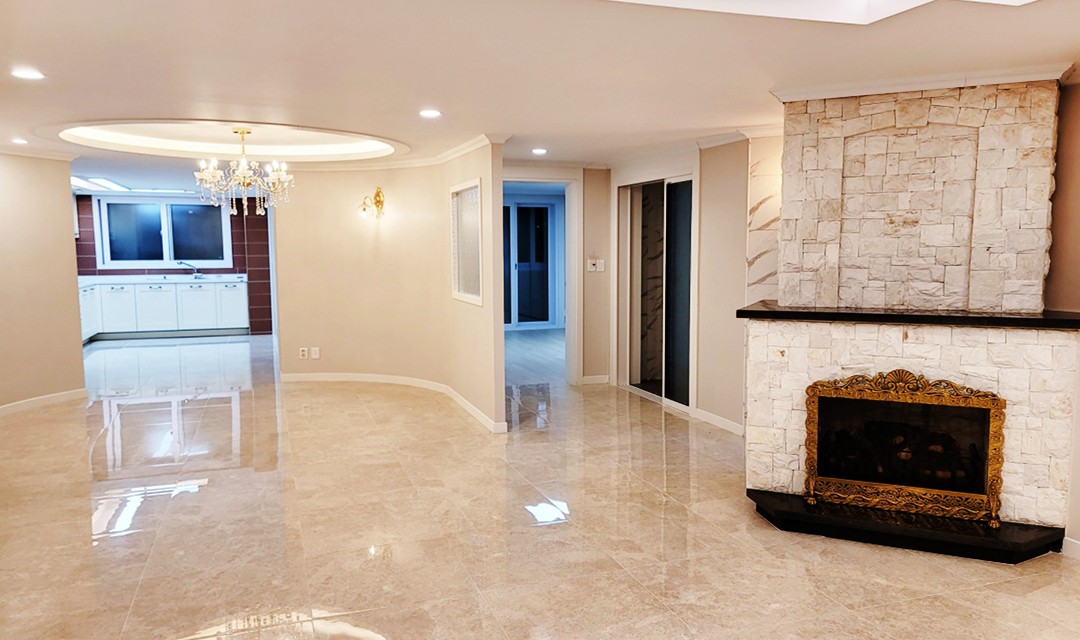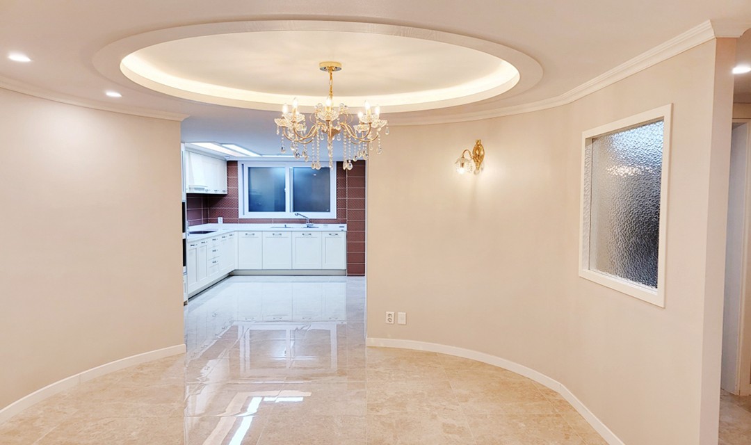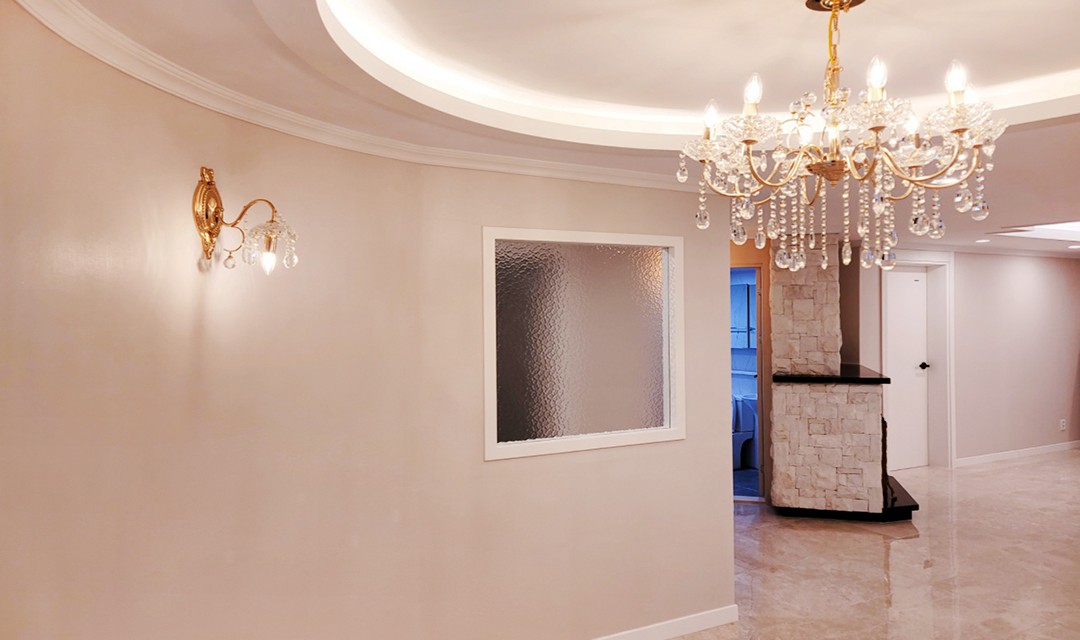 #고급 #럭셔리 #뉴클래식 #페인트시공 #화이트 #베이지 #레드 #골드 #중문 #3연동중문 #폴리싱타일 #간접조명 #벽등 #샹들리에 #50평 #빌라인테리어