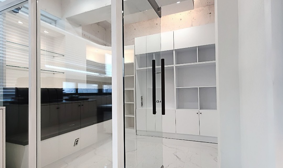 #심플 #고급 #유니크 #실용적 #목공사 #필름시공 #도배 #화이트 #그레이 #중문 #폴리싱타일 #간접조명 #매립조명 #20평 #상가인테리어 #사무실인테리어 #부동산인테리어