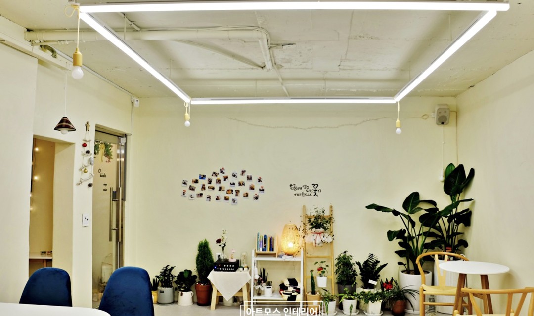#모던 #빈티지 #깔끔 #아늑한 #창고리모델링 #플랜테리어 #가벽 #페인트시공 #화이트 #라인조명 #펜던트조명 #10평 #카페인테리어