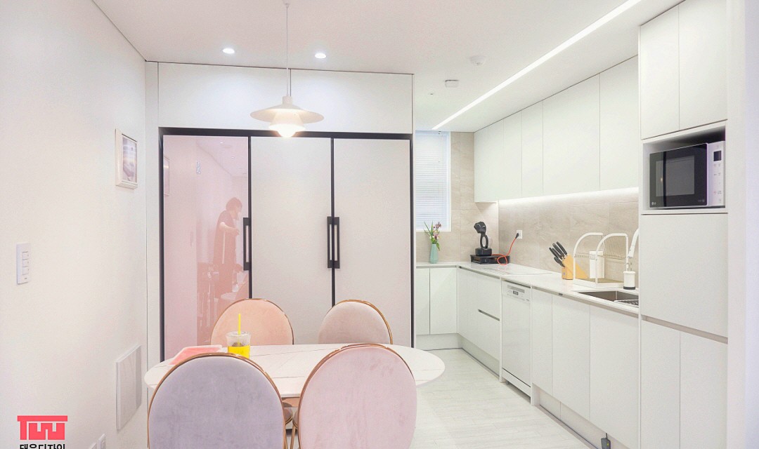 #모던 #트렌디 #심플 #네추럴 #중문시공 #슬림슬라이딩도어 #타일시공 #포세린타일 #인테리어조명 #매립조명 #간접조명 #화이트 #제작가구 #30평 #아파트인테리어
