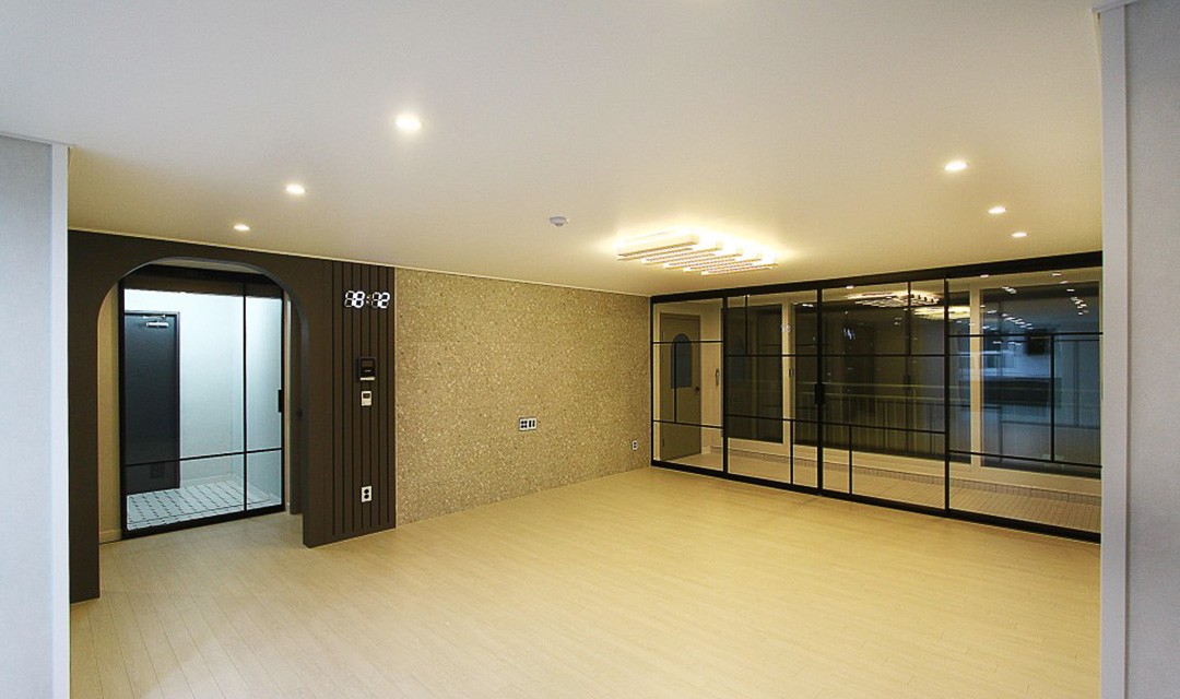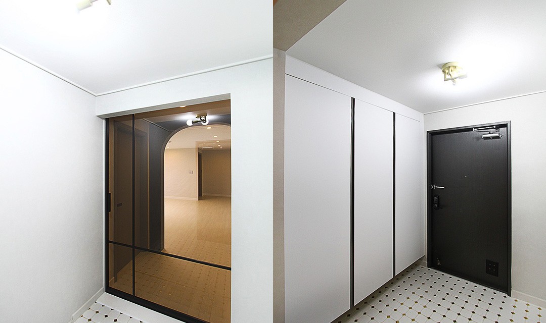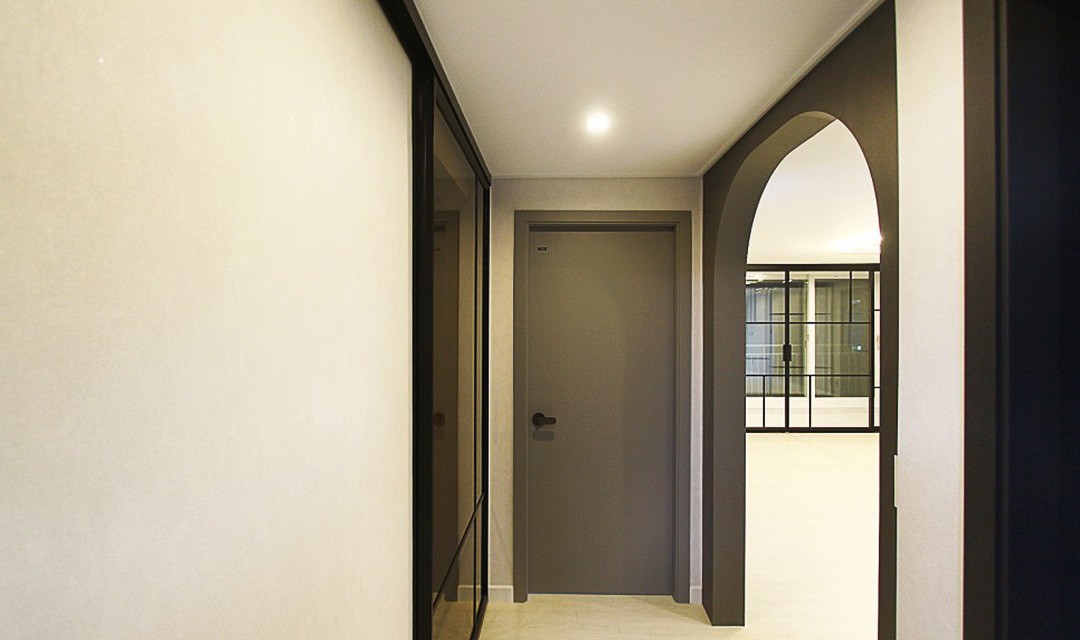 #모던 #심플 #트렌디 #타일시공 #중문시공 #2연동슬라이딩 #아치형게이트 #아트월 #강마루 #슬림슬라이딩도어 #베란다시공 #그레이 #골드 #매립조명 #인테리어조명 #40평 #아파트인테리어