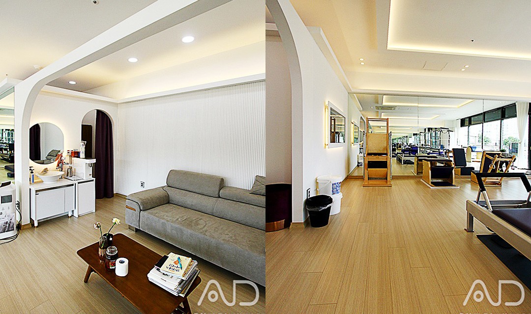 #모던 #세련 #고급 #간접조명 #매립조명 #아치형 #가벽설치 #상가인테리어 #필라테스인테리어