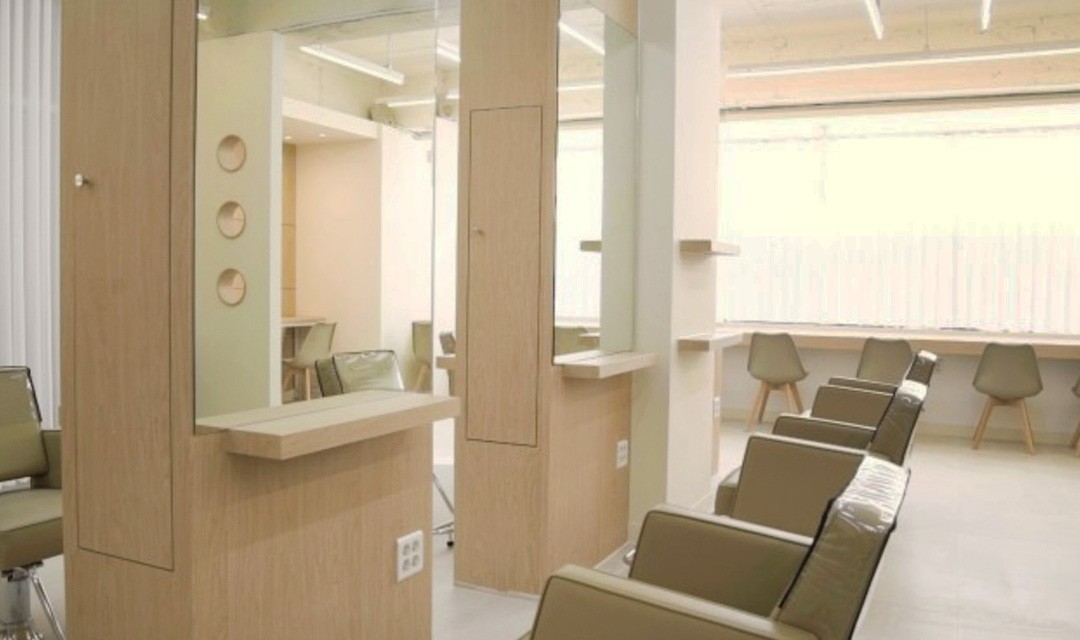 #모던 #감성적 #화사한 #목공사 #페인트시공 #우드 #크림 #베이지 #포세린타일 #50평 #상가인테리어 #미용실인테리어 #헤어샵인테리어