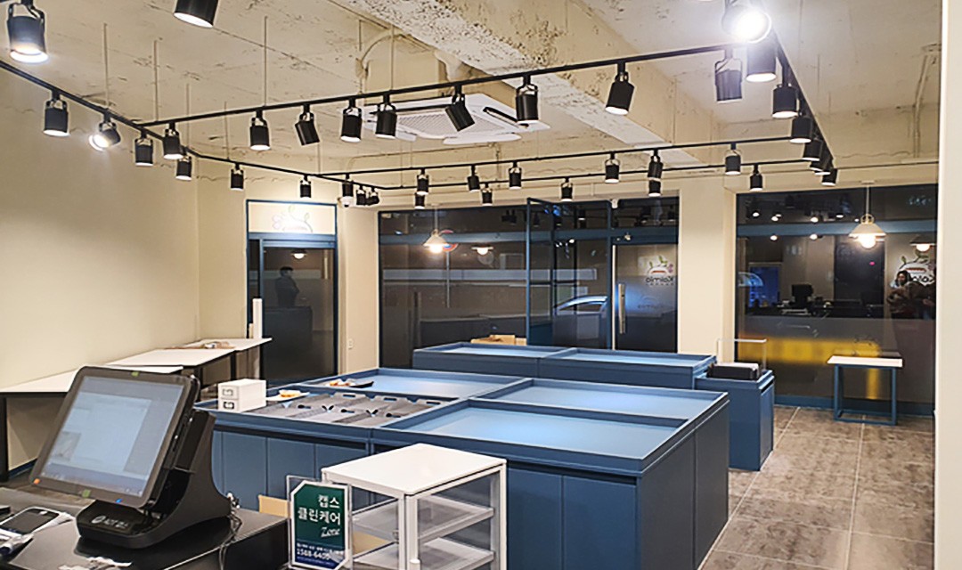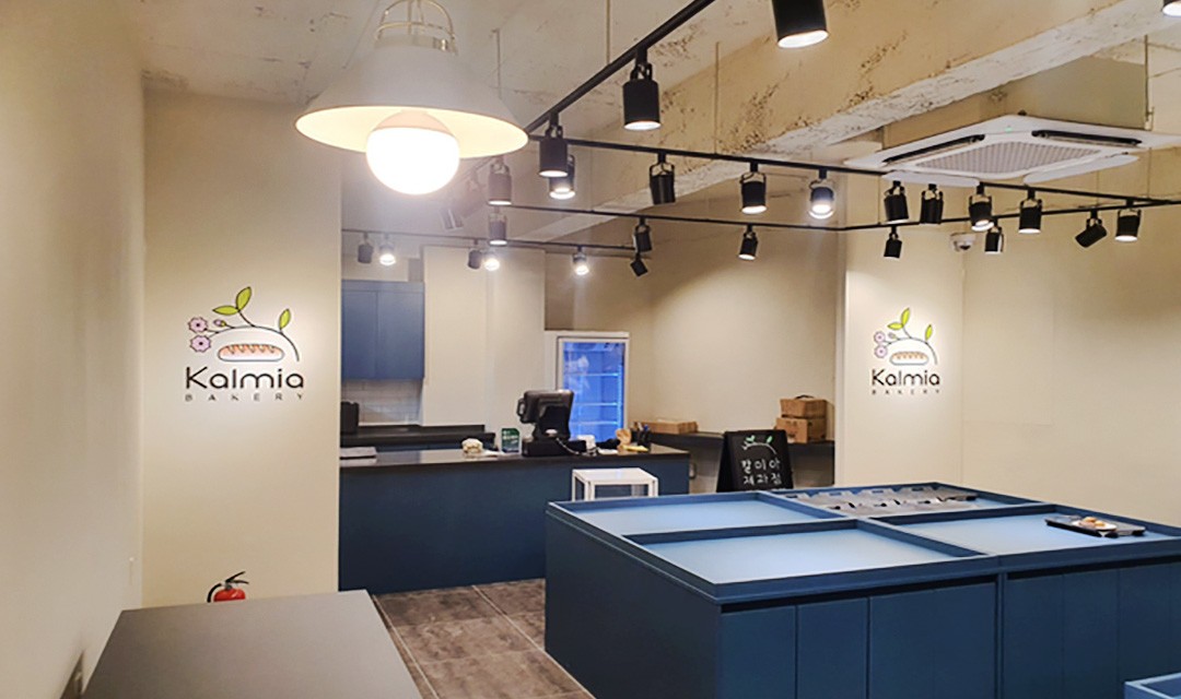 #모던 #세련 #실용적 #화이트 #블루 #그레이 #레일조명 #포인트조명 #30평 #상가인테리어 #베이커리인테리어 #빵집인테리어 #제과점인테리어