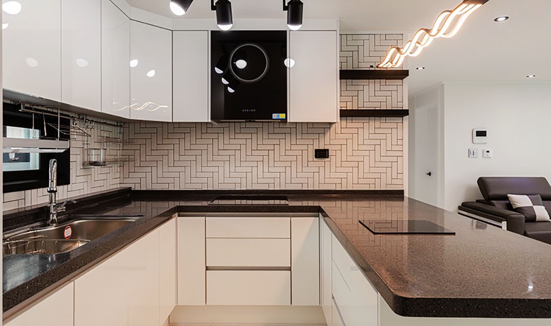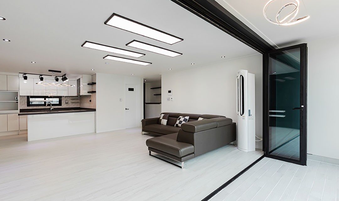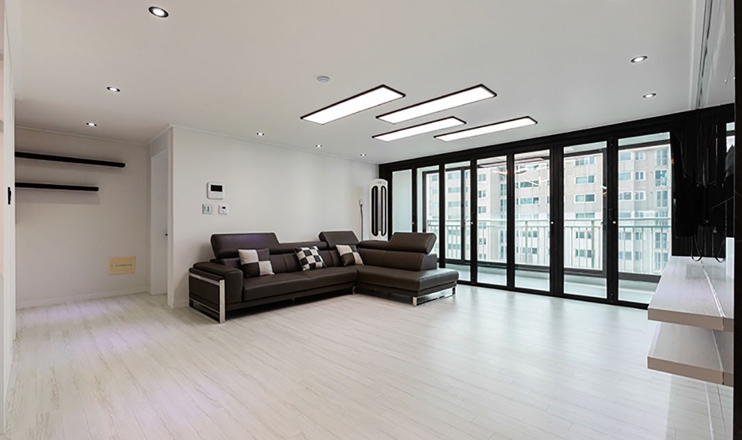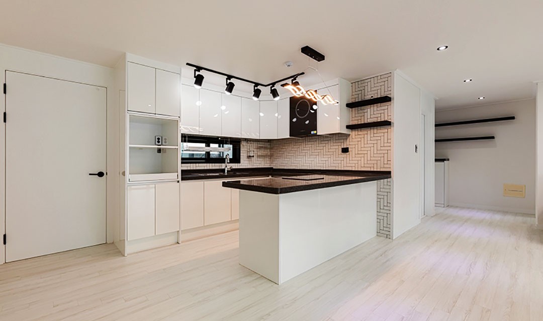 #고급 #모던 #시크 #실용적 #웨인스코팅 #화이트 #블랙 #그레이 #중문 #폴딩도어 #강마루 #포인트조명 #30평 #아파트인테리어