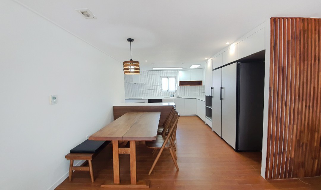 #모던 #깔끔한 #세련된 #아치 #간살작업 #시트지시공 #우드 #화이트 #중문 #아일랜드식탁 #폴딩도어 #강마루 #실링팬 #매립조명 #간접조명 #40평 #노후아파트인테리어 #아파트인테리어