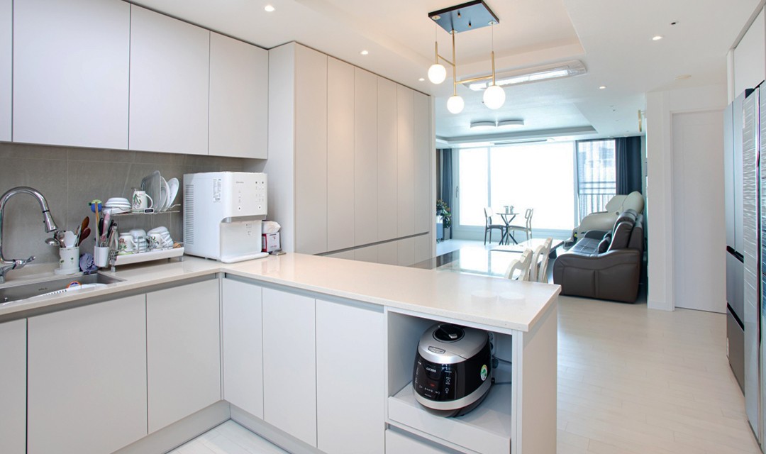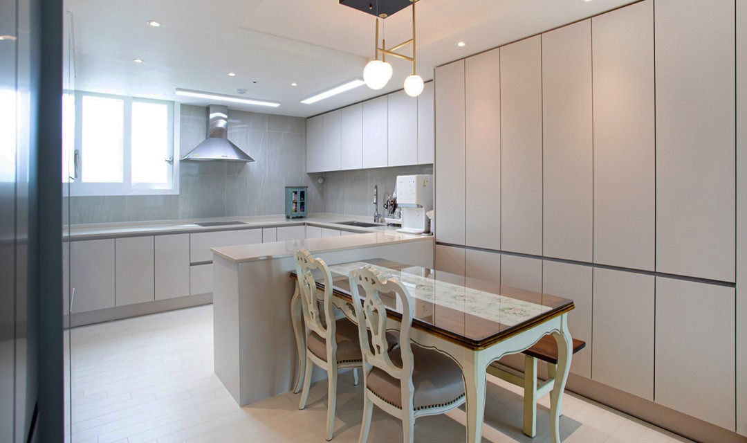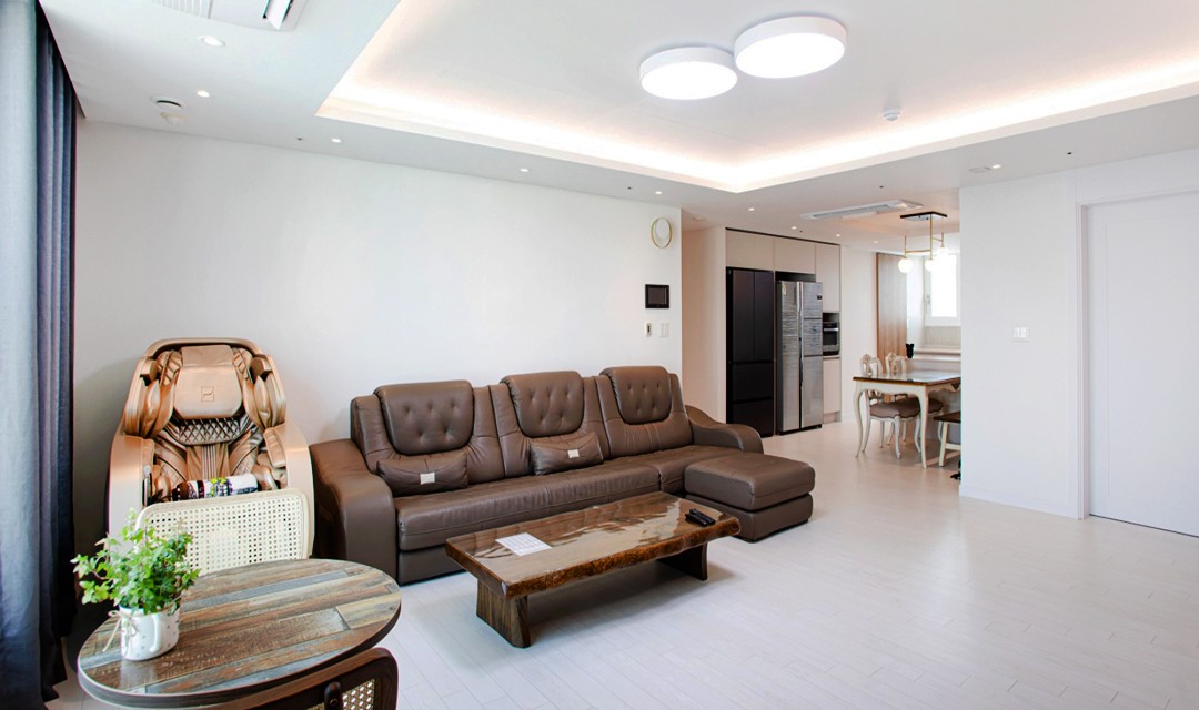 #모던 #심플 #도배 #필름시공 #우드 #화이트 #브라운 #골드 #그레이 #강마루 #포세린타일 #간접조명 #매립등 #펜던트조명 #40평 #아파트인테리어