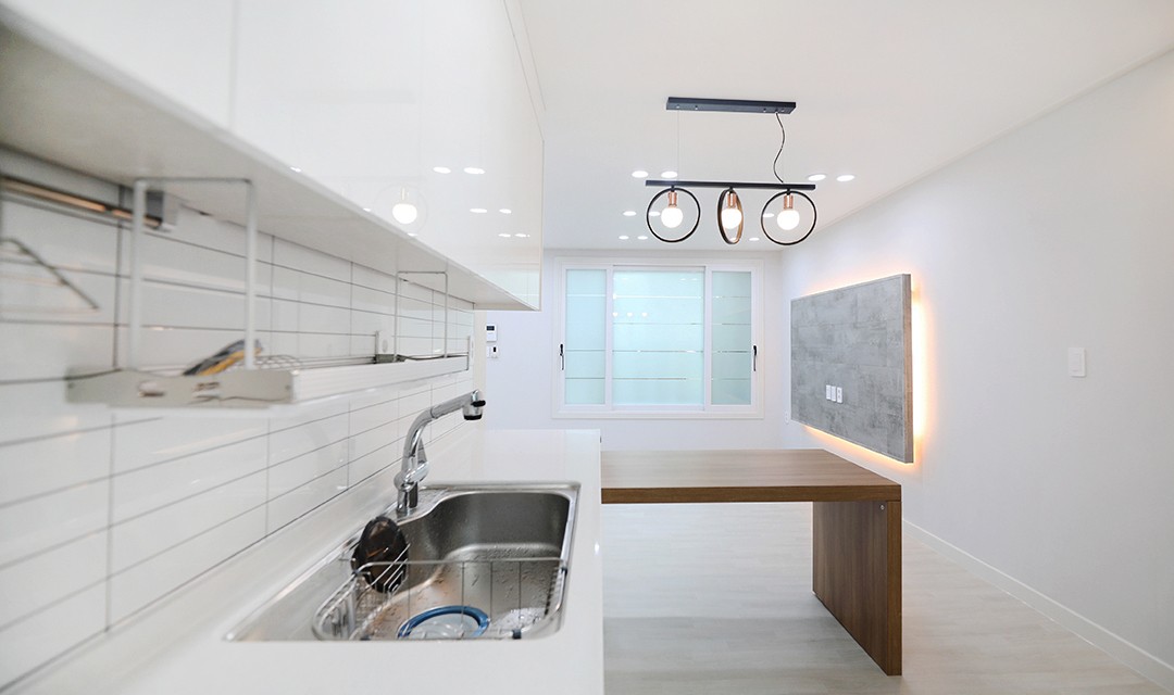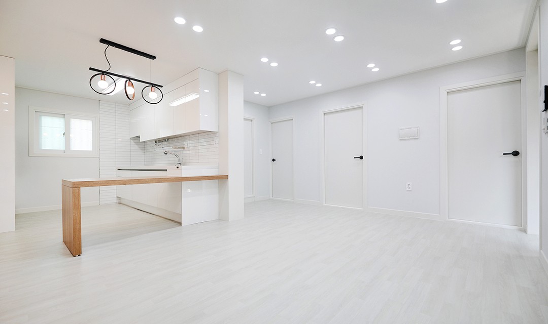 #모던 #세련 #심플 #현관문교체 #화이트 #장판 #하이그로시붙박이장 #아트월 #매립조명 #펜던트조명 #간접조명 #주택인테리어 #노후주택인테리어