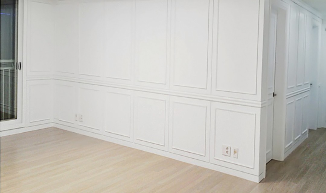 #모던 #내추럴 #미니멀 #웨인스코팅 #도장작업 #화이트 #밝은오크컬러 #중문 #양개형도어 #강마루 #아트월 #디자인가구 #30평 #아파트인테리어