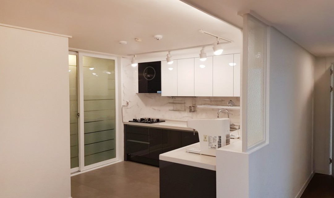 #모던 #고급 #세련 #화이트 #브라운 #그레이 #골드 #중문 #양개형도어 #포세린타일 #마루 #간접조명 #매립조명 #레일조명 #30평 #아파트인테리어