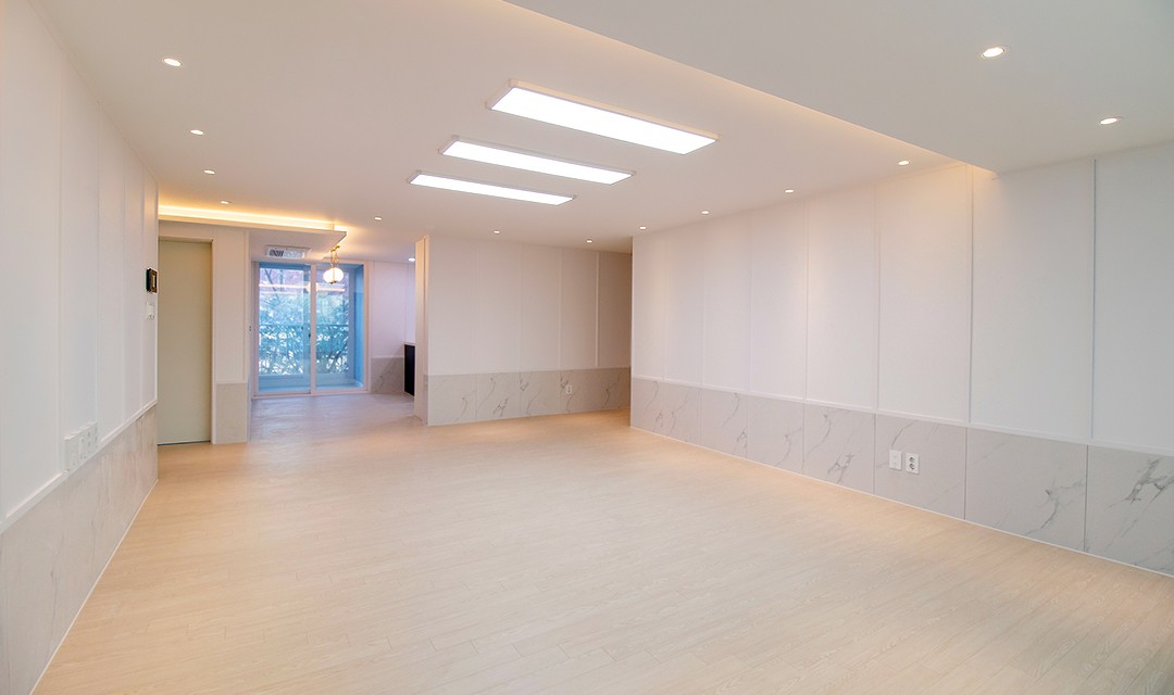 #모던 #고급 #미니멀 #필름시공 #목공사 #웨인스코팅 #화이트 #그레이 #베이지 #골드 #중문 #양개형도어 #폴리싱타일 #템바보드 #간접조명 #40평 #아파트인테리어