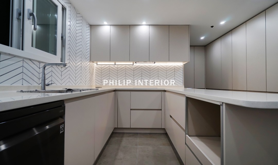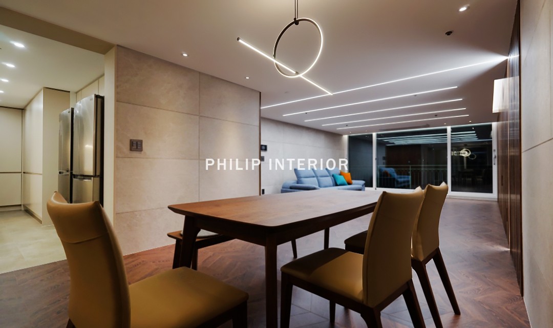 #모던 #고급 #세련 #무몰딩 #우드 #화이트 #브라운 #그레이 #포세린타일 #헤링본타일 #매립조명 #간접조명 #라인조명 #60평 #아파트인테리어