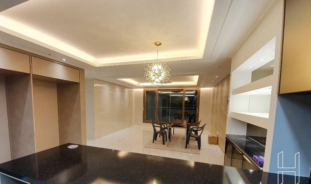 #고급 #모던 #무드 #필름시공 #목공사 #화이트 #베이지 #라이트브라운 #중문 #슬라이딩도어 #수입타일 #코팅타일 #폴리싱타일 #아트월 #포인트조명 #간접조명 #30평 #아파트인테리어