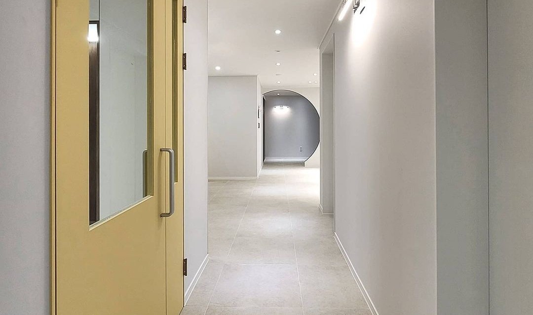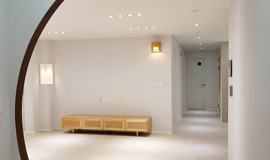 #심플 #고급 #아치 #목공사 #우드 #크림 #화이트 #월넛 #중문 #포세린타일 #벽등 #간접조명 #아파트인테리어