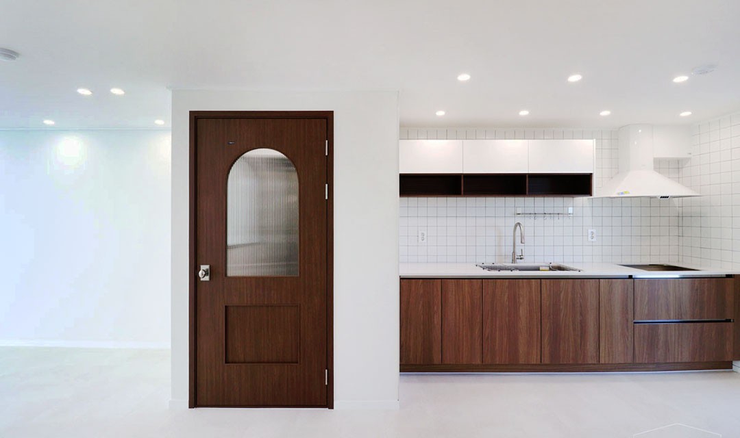 #고급 #심플 #세련 #하부띄움 #도장작업 #우드 #화이트 #그레이 #중문 #아치창문 #간접조명 #테라조타일 #매립조명 #20평 #아파트인테리어