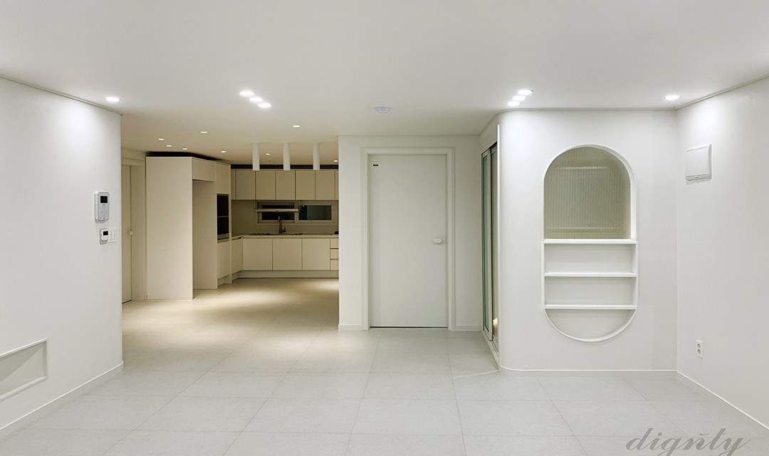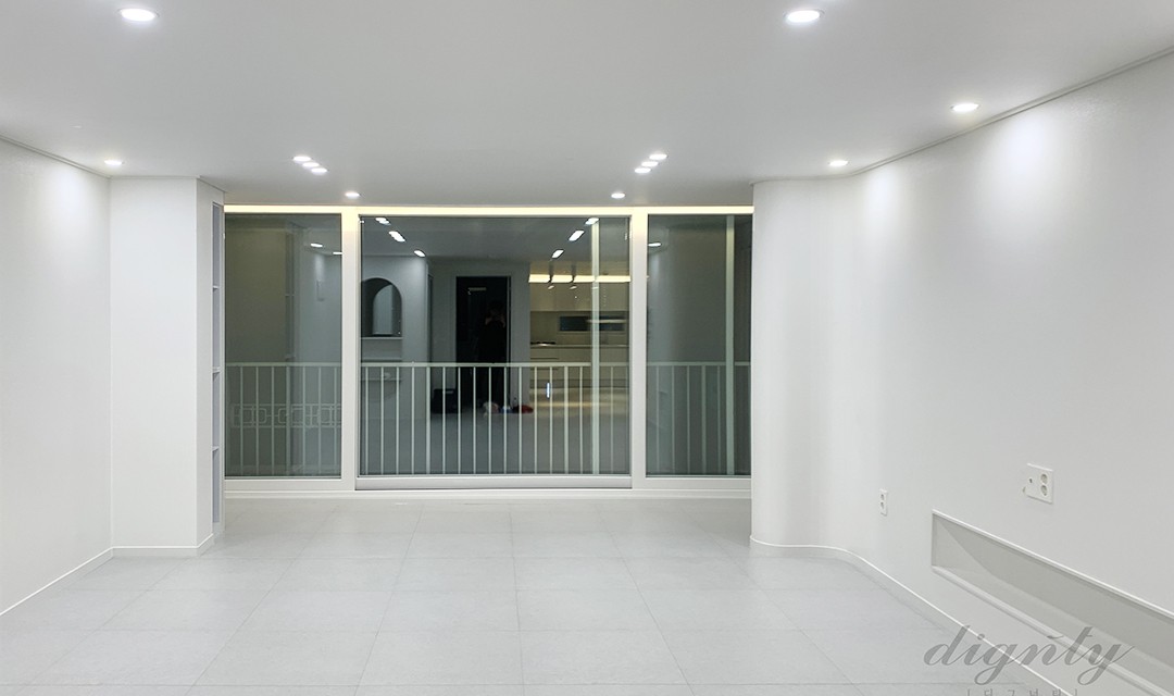 #모던 #심플 #깔끔한 #거실확장 #목공사 #곡선코너 #필름시공 #가벽 #화이트 #블랙 #그린 #민트 #중문 #초슬림3연동슬라이딩도어 #장판 #원형직부등 #간접조명 #아파트인테리어
