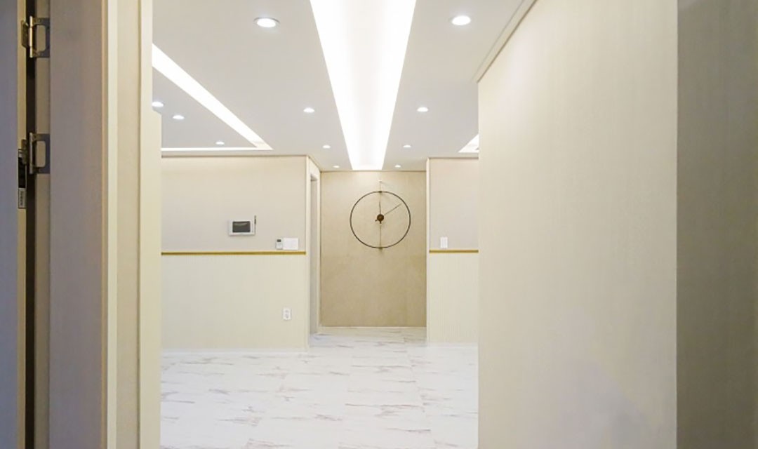 #고급 #럭셔리 #화사 #템바보드 #아치 #화이트 #아이보리 #골드 #중문 #화이트골드타일 #폴리싱타일 #골드필름 #원형시계 #폴딩도어 #간접조명 #40평 #아파트인테리어