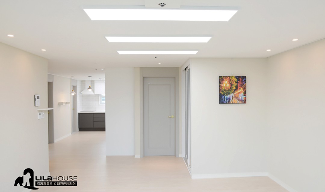 #모던 #세련 #고급 #실크도배 #도장작업 #탄성코트 #화이트 #골드 #코튼베이지 #중문 #3연동슬라이딩도어 #강마루 #간접조명 #매립조명 #30평 #아파트인테리어