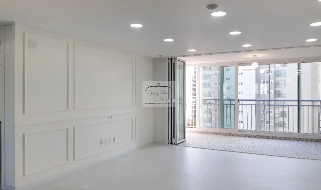 #고급 #모던클래식 #개방감 #필름시공 #웨인스코팅 #화이트 #그레이 #그린 #마루 #매립조명 #벽등 #포인트조명 #30평 #아파트인테리어