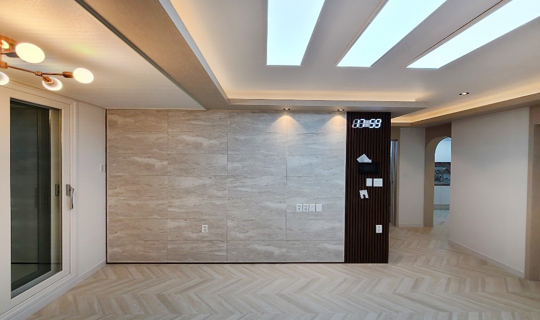 #모던 #고급 #따뜻한 #아치 #하부띄움 #우드 #화이트 #파스텔컬러 #헤링본마루 #아트월 #포인트조명 #간접조명 #라인조명 #주택인테리어