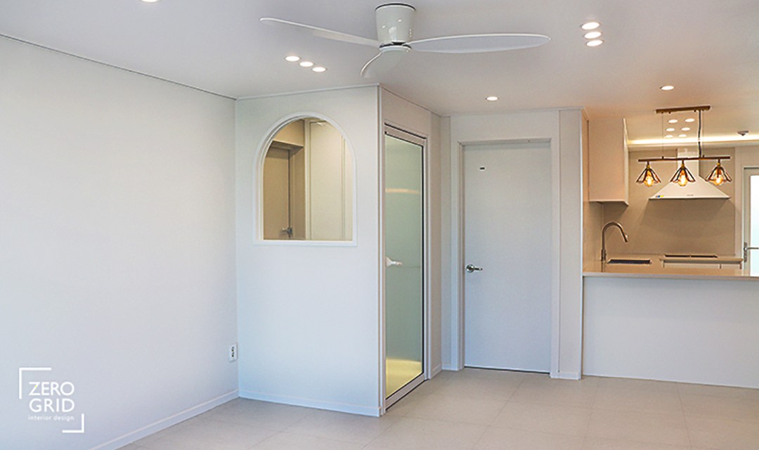 #모던 #심플 #트렌디 #네추럴 #중문시공 #가벽설치 #확장시공 #타일시공 #테라조타일 #매립조명 #레일조명 #인테리어조명 #실링팬 #화이트 #실크벽지 #20평 #아파트인테리어