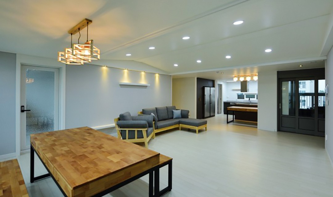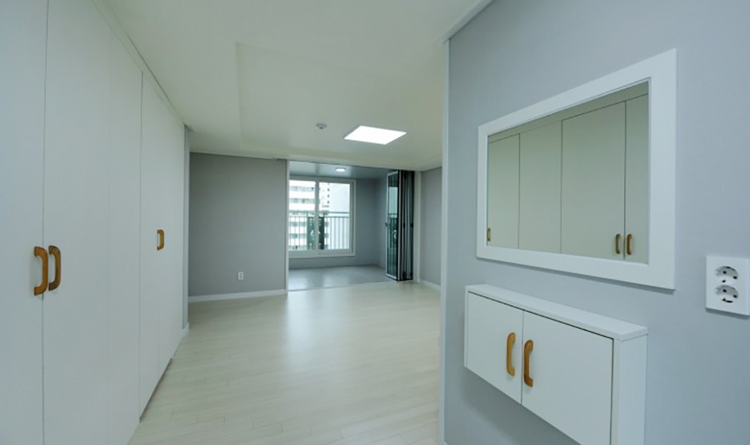 #모던 #세련 #깔끔 #트렌디 #거실확장 #행잉형신발장 #도배 #화이트 #그레이 #민트 #중문 #폴딩도어 #간접조명 #매립등 #아파트인테리어